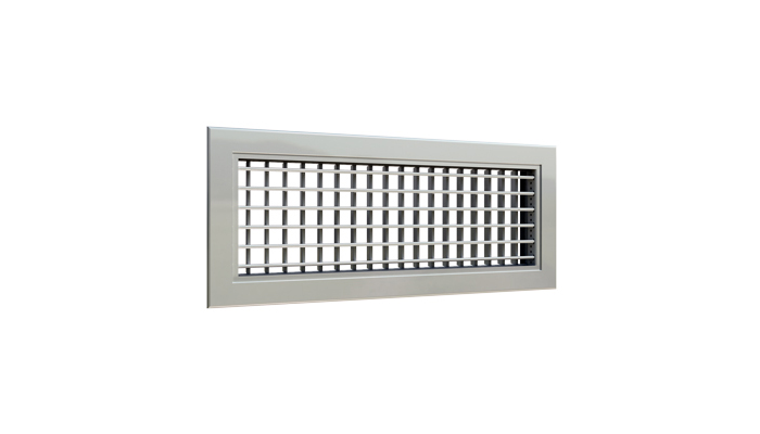 AD est une grille réglable simple ou double déflection fabri-quée en aluminium. Grâce aux ailettes réglables, la grille est utilisable pour les applications de soufflage ou elle peutêtre ajustée pour obtenir la portée souhaitée et la forme du jet d'air.