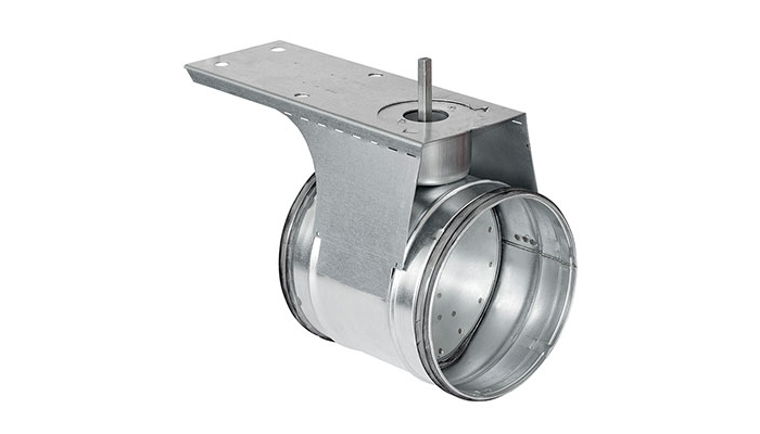 Les registres de diamètre Ø 80–630 sont composés d'un registre étanche type DTU et d'une platine. Le registre n'a pas de poignée mais un axe rallongé évitant l'emploi d'un étrier VREDF. Le registre est conçu être motorisé sur site.
