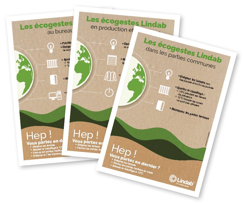 Téléchargez les affiches des écogestes et mettez-les en place dans les différentes zones de votre agence Lindab.